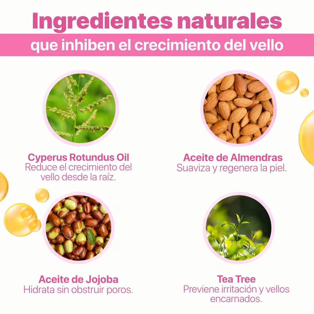 Fórmula natural que hidrata, suaviza y ayuda a inhibir el crecimiento del vello.